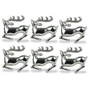 DII Conjunto de anéis de guardanapo decorativo de Natal para decoração de mesa de Ação de Graças, 6 cm de diâmetro, rena prateada, 6 peças
