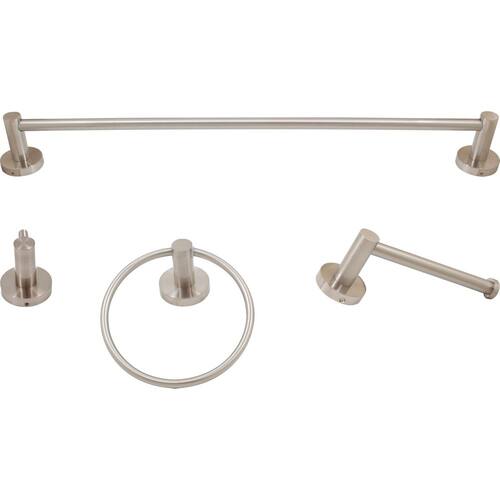 - O conjunto inclui barra de toalha Zurich de 24 polegadas, gancho para roupão Zurich, anel de toalha Zurich e porta-papel postal Zurich.