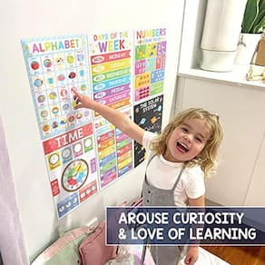 18 pôsteres educacionais para crianças pequenas — pôsteres didáticos laminados para crianças de 3 a 5 anos, pôster do alfabeto Abc Charts, material pré-escolar para educação domiciliar, pôsteres de sala de aula pré-escolar, decoração de parede e jardim de infância