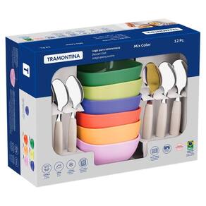 Para servir aquela sobremesa deliciosa num encontro de família, conte com Conjunto de Pote para Sobremesa Mix Color com 12 Peças. Ele é ideal para quem ama uma mesa colorida e não abre mão da qualidade, pois seus potes tem produção em polipropileno com proteção antimicrobiana que inibe e reduz o crescimento de fungos e bactérias. Resistentes e duráveis, suas colheres tem lâminas em aço inox com espessura e estampagem especiais e cabos de polipropileno. As peças ainda podem ir à máquina de lavar louças, micro-ondas, refrigerador e freezer, o que facilita seu dia a dia e deixa suas tarefas muito mais práticas!