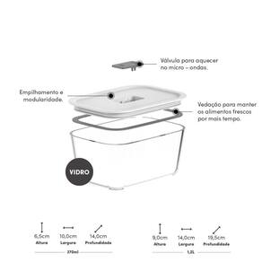 Conjunto de Potes de Vidro Herméticos 3 Peças Fresh Lock Ou - Conteúdo do Jogo02 Pote com Tampa (Compr. X Larg. X Alt.) 10 x 14 x 6,5 - Capacidade 370 ml
