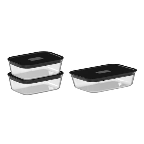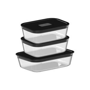 Conjunto de Potes de Vidro Herméticos 3 Peças Fresh Lock Preto Ou