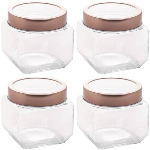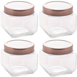 Conjunto de Potes de Vidro Lyor Gastro 800ml 4 Porta Mantimento com Tampa Metal Rose Gold.