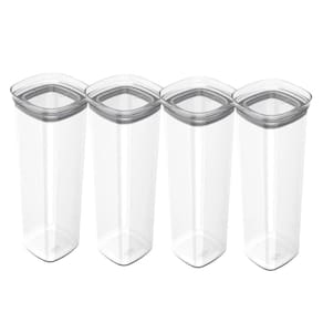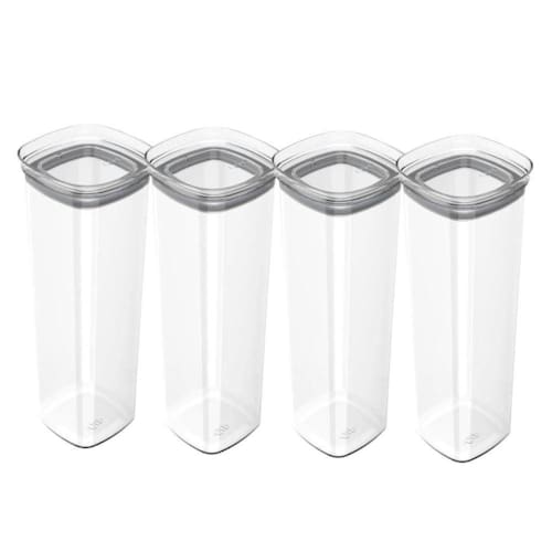 Conjunto de Potes Herméticos 2 L 4 Peças Block Modular Transparente OuO Conjunto De Potes Herméticos Block Modular 4 Peças é perfeito para auxiliar na organização da sua casa, pois armazena diferentes tipos de alimentos secos. Empilhe, encaixe e enxergue facilmente o conteúdo, mantendo tudo em ordem. Seu design foi pensado para que os potes sejam empilhados e facilmente abertos, com cantos arredondados que proporcionam uma pega confortável e ergonômica. Além de possuir anel de vedação feito em silicone com tecnologia que permite abertura suave e vedação perfeita.