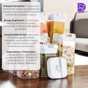 Capacidade potes 4 e 5: 800 ml cada (9 x 9 x 15 cm)
