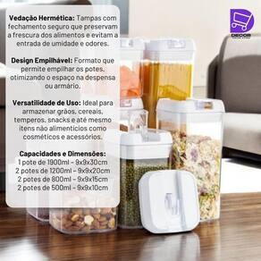 Conteúdo da embalagem: 1 pote 1900 ml, 2 potes 1200 ml, 2 potes 800 ml, 2 potes 500 ml, adesivos de identificação
