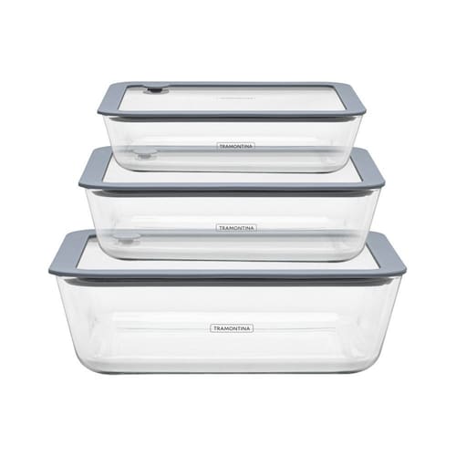 Conjunto de Potes Tramontina Vittra 64220770 Retangulares de Vidro com Tampa Hermética - Único