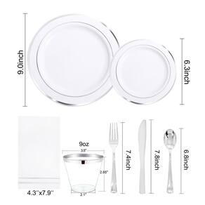 - Aparência elegante: nossos pratos descartáveis de prata são lindamente projetados com uma aparência elegante que adicionará um toque de luxo à sua experiência de jantar. Seja uma reunião de família, um jantar formal ou uma ocasião especial, estes pratos de plástico branco e prata complementarão perfeitamente o seu gosto. Não são adequados para uso no micro-ondas.