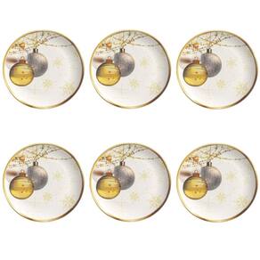 Conjunto de Pratos de Sobremesa 06 Peças Natal Noite Dourada Porto Brasil