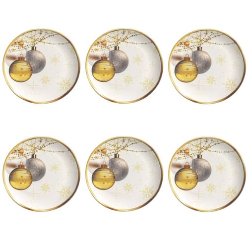Conjunto de Pratos de Sobremesa 06 Peças Natal Noite Dourada Porto Brasil - Informações