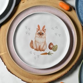 Conjunto de Pratos de Sobremesa 06 Peças Páscoa Bio Gatinhos Porto Brasil - Incluso