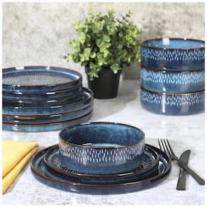 Especificações: Cor: Azul Cobalto Moderna, Padrão: Geométrico, Nome da Coleção: All, Peso do Item: 11,77 kg, Tipo de Acabamento: Artístico, Instruções de Cuidado com o Produto: Pode ser utilizado no microondas, Pode ser lavado na lava-louças, É Micro-ondas: Sim, Fabricante: Gibson Overseas Inc., Número de Peças: 12, UPC: 085081637369, Dimensões da Embalagem: 36,2 x 32,4 x 31,5 cm, Departamento: Cozinha, Número do Modelo: 142588.12R Marca: Não Informado