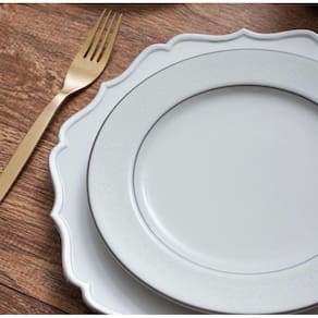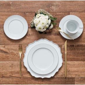 Menos é mais, a decoração Martha parte deste princípio para encantar sua mesa. Apesar do minimalismo aparente, os detalhes podem ser vistos mais de perto, nos desenhos de renda emoldurados por filetes cinza. Essa decoração é a aposta perfeita para uma mesa requintada e moderna!