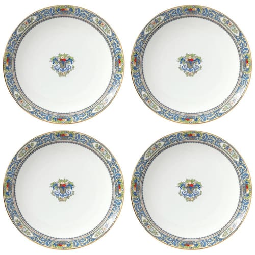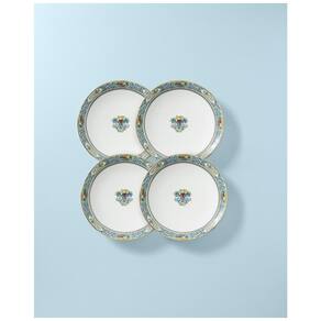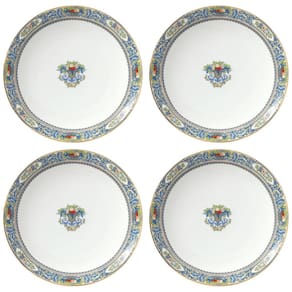 Um clássico de 1918 revive na nossa coleção imaculada Autumn White. Este sofisticado conjunto de 4 pratos de jantar apresenta o icônico design de cornucópia, agora em uma porcelana durável e lavável na máquina de lavar louça, com um formato cupê contemporâneo. Cada prato é adornado com brilhantes detalhes em ouro 24K, acrescentando um toque de luxo à sua mesa.