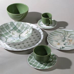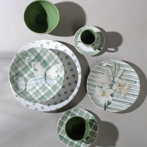 Criada com estampas impressas diretamente em cada peça, a linha Coup da Porto Brasil proporciona uma efeito impecável na decoração de sua mesa posta. A delicadeza e leveza da natureza à serviço!