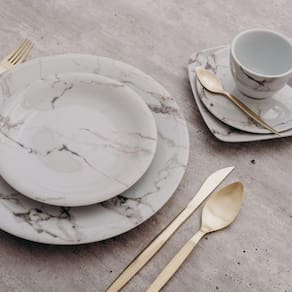 Conjunto de Pratos Rasos 06 Peças Mármore Cinza Schmidt A decoração Mármore Cinza não decepciona e remonta uma tendência que usa os elementos naturais, como a pedra, proporcionando a visão do que é externo e ao mesmo tempo, belo. Evidencia a modernidade e a inovação à mesa, surpreendendo convidados todos os dias! Conjunto de Pratos Rasos 06 Peças Mármore Cinza Schmidt - Incluso 6 Pratos Rasos - 27 cm Conjunto de Pratos Rasos 06 Peças Mármore Cinza Schmidt - Informações Uso: Resistente a micro-ondas, resistente a lava-louças Material: Porcelana Formato: Redondo Decoração: Marmorizado Cor: Branco e cinza