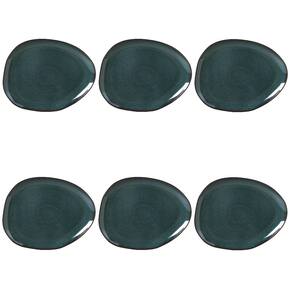 Conjunto de Pratos Rasos Oval 06 Peças Orgânico Oceano Porto Brasil