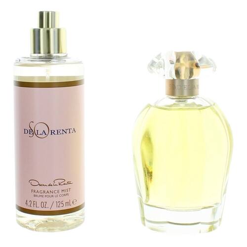O conjunto de presente inclui um spray Eau De Toilette de 3,4 onças e uma névoa corporal de 4,2 onças. Oscar De La Renta projetou So De La Renta em 1997. É o resultado das seguintes notas de fragrância principais: frésia, clemintina e gardênia. As notas médias são: tuberosa, narciso e baunilha e a base da fragrância é: almíscar, peônia e sândalo.