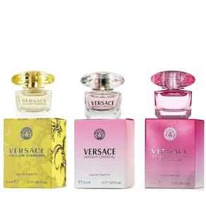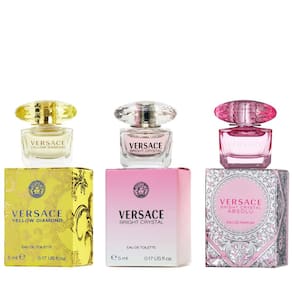 Descubra a essência da elegância feminina com a coleção de fragrâncias em miniatura de 3 peças da Versace para mulheres.