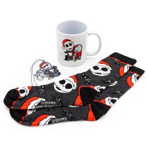 - (Crew Socks): Para manter seus pés aquecidos e estilosos, o conjunto inclui um par de meias redondas aconchegantes com designs de Papai Noel. Essas meias são confortáveis e duráveis e feitas de uma mistura macia e elástica de 98% poliéster e 2% elastano. O divertido padrão de Santa Jack é uma homenagem a uma das cenas mais memoráveis do filme, tornando essas meias uma ótima maneira de mostrar seu amor pelo filme.