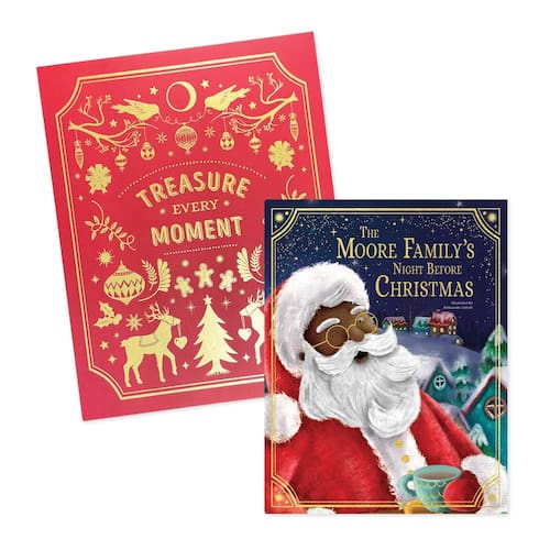 Encante seus entes queridos com um conjunto de presente personalizado que inclui um livro personalizado e uma caixa de presente de lembrança. Baseado no poema "Twas the Night Before Christmas" de Clement Clarke Moore, este livro de edição especial é adornado com detalhes em folha dourada e apresenta os nomes de sua família ao longo da história e ilustrações. A caixa de presente vermelha festiva também é acentuada com folha dourada e tem uma mensagem especial na parte de trás: "O presente da família é mais precioso do que ouro." Personalize o livro com uma foto de família e escolha o tom de pele do Papai Noel para tornar esta história querida realmente sua. - Conjunto de presente de Natal personalizado – Surpreenda famílias com um conjunto de presente personalizado que inclui um livro baseado no amado poema de Clark Clemente Moore "'Twas the Night Before Christmas" e uma caixa de presente vermelha festiva! - Magicamente personalizado – com detalhes dourados brilhantes na capa do livro e na caixa de presente, este conjunto pode ser personalizado com os nomes da família, uma foto e o tom de pele do Papai Noel. - Uma lembrança familiar – reúna todos para uma nova tradição de leitura! Desde abrir o cartão até ver seus nomes na história, este conjunto de presente espalha alegria e sorrisos! - Alta qualidade: esta história de capa dura de 20 páginas, 23 x 28 cm é feita nos EUA e é perfeita para todas as idades. A caixa de presente tem 26,7 x 33 cm e 3,8 cm de profundidade. - Compre com confiança – seu pedido será feito com um compromisso de qualidade premium e o destinatário vai adorar! Nosso objetivo é manter sua reputação de oferecer presentes distintos e personalizados que proporcionam sorrisos de alegria e risadas.