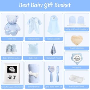 presentes de urso para meninos a partir de 0 meses - ?Presentes exclusivos para meninos?Quando você está procurando presentes para bebês recém-nascidos, você precisa de algo que impressionará mamãe e papai e seja totalmente prático. Celebre a chegada do novo bebê com este macacão de algodão adorável e o chapéu e as botas de malha derreterão corações uma vez no novo menino. Esta cesta de presente para bebê impressionará como presente de mamãe, presente para novos pais, presente de chá de bebê ou presente corporativo - ?Presentes de alta qualidade para o seu pequeno?Cada presente na cesta de presente para recém-nascido é cuidadosamente selecionado à mão para garantir a segurança e o conforto do bebê. Este adorável conjunto de presente para bebê inclui um brinquedo de urso, cobertor de bebê, faixa com capuz, moldura de pegada de lembrança, botas de malha, macacão, babador, chapéu, luvas, conjunto de 2 escovas, 1 * toalha de banho e rosto, 1 cartão de marco do coração. Tudo vem em uma linda caixa de presente quadrada, perfeita para exibir em um chá de bebê ou quarto do bebê - ?Melhor para o seu bebê?Cada item do conjunto de presente para recém-nascido é cuidadosamente selecionado à mão para garantir a segurança e o conforto do bebê. Você vai adorar estes tecidos macios – Todos os presentes de tecido são feitos de algodão puro e macio para a pele delicada do bebê. Os adoráveis sapatos de malha para bebês são a peça básica perfeita para o guarda-roupa do Bub, também a maneira perfeita de completar qualquer uma das roupas do seu recém-nascido! Entre na fofura com nossas adoráveis botas de bebê - ?Moldura de ultrassom e registro de crescimento?Prepare-se para um pequeno pacote de chegada do bebê com todas as necessidades – Nossas opções de cesta de presente para bebês oferecem presentes exclusivos e prontos para memórias duradouras, com opções de entrega convenientes para você ou para a nova mãe. Crie um doce presente de chá de bebê para celebrar a chegada daquele novo pequeno. Um momento tão significativo antes da chegada do bebê que a mãe sempre será capaz de olhar para trás com carinho - ?Presentes exclusivos para recém-nascidos?Se você está dando um presente para a mãe de um novo bebê ou para seu próprio bebê, este presente de bebê fará com que todos sintam sua atenção e cuidado. Peça este maravilhoso presente de urso para o chá de bebê de um melhor amigo, revelação de gênero, registro do bebê, aniversário, primeira visita. Imagine você ou sua amiga recebendo esta caixa de presente cuidadosamente organizada para bebê, cheia de amor e carinho, e pode ter certeza de que ela vai adorar os presentes