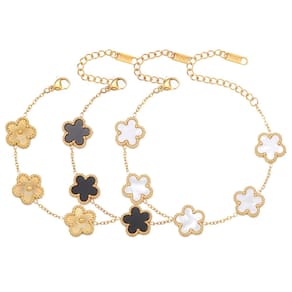 Pulseira de trevo: o trevo de quatro folhas da lenda simboliza sorte, cem mil contas de trevo só podem encontrar um trevo de quatro folhas, quatro folhas representam respectivamente amor verdadeiro, saúde, reputação, riqueza - Pulseira de trevo: o trevo de quatro folhas da lenda simboliza sorte, cem mil contas de trevo só podem encontrar um trevo de quatro folhas, quatro folhas representam respectivamente amor verdadeiro, saúde, reputação, riqueza - Informações de tamanho: A pulseira Clover é uma corrente de extensão de 16,3 cm + 4,8 cm com um design de corrente de extensão ajustável que atende à maioria dos requisitos de pulso. Você receberá três pulseiras, uma em preto, branco e dourado - Tecnologia requintada: a pulseira é feita de material de aço inoxidável de alta qualidade, forte, não desbota, mas não deixa sua pele ficar verde, você pode usar à vontade! - Presente perfeito: as pulseiras delicadas de trevo da sorte são os melhores presentes para esposas, namoradas, mães e filhas no Dia de Ação de Graças, Dia das Mães, Natal, aniversários, Dia dos Namorados e outros feriados. - Garantia de satisfação: Se você tiver alguma dúvida ou preocupação, nossa equipe profissional de atendimento ao cliente está pronta para ajudá-lo e acompanhar seu serviço pós-venda