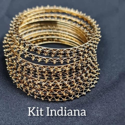 Conjunto de Pulseiras Indiana Dourada e Preta 12 peças