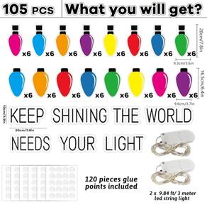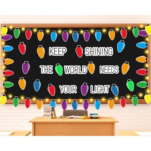 Conjunto de quadros de avisos de lâmpadas de Natal de 105 peças, decoração de sala de aula, lâmpadas coloridas, recortes de borda com luzes de LED para Natal, férias de inverno, casa, material escolar, decoração de parede em quadro-negro