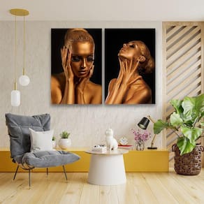 Conjunto De Quadros Dupla Mulheres Douradas Conjunto de Quadros Dupla Mulheres Douradas P (60 x 40) - Qualidade Premium (padrão museu)