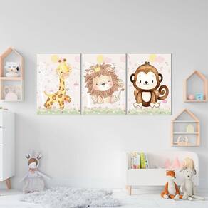 Conjunto De Quadros Trio Infantil Animais Conjunto de Quadros Trio Infantil Animais P 120X60 - -Qualidade Premium (padrão museu)