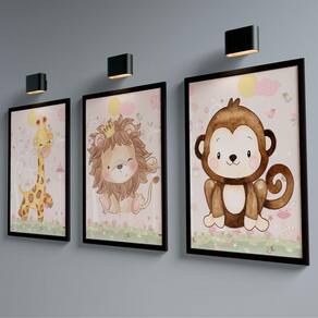 Acompanha o produto: - Conjunto de Quadros Trio Infantil Animais Garantia: - 90 Dias