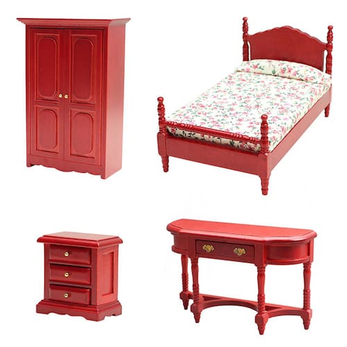 Dimensões: Cama: 16,4 x 9,4 x 9,7 cm Guarda-roupa: 9,6 x 4,6 x 14,5 cm Mesa de cabeceira: 5,5 x 3,2 x 5,8 cm Mesa lateral: 12 x 4 x 7,5 cm Material: madeira Peso: 480 g Conjunto completo de móveis de quarto: este conjunto de 4 peças inclui cama de mogno vermelho, guarda-roupa, mesa de cabeceira e mesa lateral, tudo feito para aprimorar seu quarto de casa de bonecas. Construção em madeira de alta qualidade: feito de madeira durável, este conjunto de móveis em miniatura oferece detalhes realistas e durabilidade duradoura por anos de jogo. Perfeito para brincar de fingir: incentive brincadeiras criativas com este conjunto de quarto, permitindo que as crianças criem suas próprias cenas caseiras em miniatura e estimulando a criatividade. Não é um brinquedo para crianças pequenas: observe que este é um acessório de casa de bonecas e não se destina ao uso na vida real. Peças pequenas podem representar um risco de asfixia, por isso devem ser mantidas longe do alcance de crianças pequenas. Serve para casas de bonecas em escala 1/12: projetado para casas de bonecas em escala 1/12, este conjunto de móveis se encaixa perfeitamente e é um ótimo complemento para qualquer coleção de casas de bonecas.