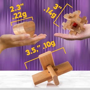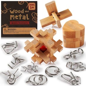 - Conjunto de blocos de madeira e quebra-cabeças de arame: este pacote de quebra-cabeças contém 9 quebra-cabeças de metal e 3 quebra-cabeças de madeira. Também possui certificação ASTM F963 e CSPIA. Os quebra-cabeças de montagem e desemaranhamento existem há séculos e proporcionaram diversão a gerações de crianças e até adultos, mantendo suas mentes afiadas e criativas.