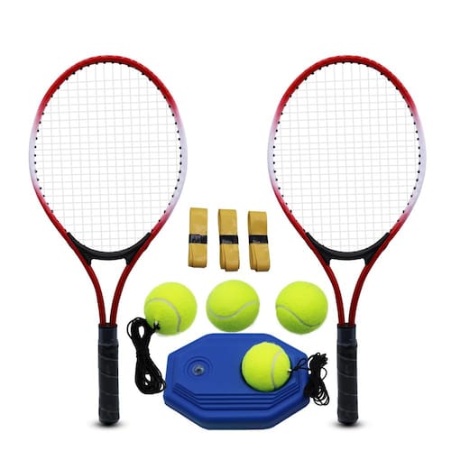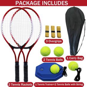 -?Conjunto 11 em 1 de alta qualidade?Nosso conjunto de raquetes de tênis vem com 2 raquetes de tênis de 21 polegadas, 2 bolas de tênis, 2 bolas de tênis com corda, 1 tênis, 3 alças e 1 capa de raquete portátil, adequada para estudantes, amantes, idosos, jogadores iniciantes ou intermediários.