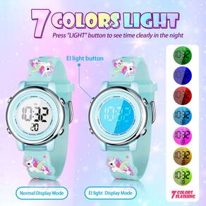 Relógio infantil de unicórnio de 3 peças e pulseira de unicórnio, relógio digital infantil à prova d'água, relógio leve com cronômetro de alarme, unicórnio, Páscoa, presente de Dia das Crianças para meninas de 3 a 10 anos (estilo fofo)