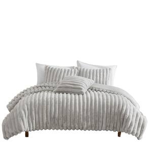 Conjunto de edredom Benjara Sieno de 3 peças Twin XL, pele sintética cinza e forro de microvison