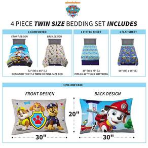 - Dois designs em um edredom: Marshall, Chase, Skye e Rubble entram em ação contra o céu azul brilhante e ensolarado de um lado deste edredom aconchegante. Vire para revelar uma estampa de personagem da Patrulha Canina em um pano de fundo cinza claro do outro lado