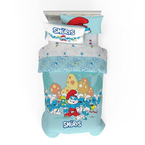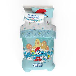 Franco Jogo de cama infantil The Smurfs, super macio, confortável, reversível, 4 peças, tamanho solteiro (produto oficialmente licenciado) - O conjunto completo de linho de 4 peças de solteiro inclui: 1 lençol com elástico 99 cm (L) x 190 cm (C) com bolsos profundos e cabe em colchões de 25 a 30 cm de espessura. 1 lençol de cima 167 cm (L) x 244 cm (C). 1 fronha padrão 51 x 76 cm. 1 edredom reversível duplo/completo 183 cm (L) x 218 cm (C). Projetado para caber em uma cama de solteiro padrão. - O conjunto completo de linho de 5 peças inclui: 1 lençol com elástico de 137 cm (L) x 190 cm (C) com bolsos profundos e cabe em colchões de 25 a 30 cm de espessura. 1 lençol de cima 205,7 cm (L) x 243,8 cm (C). 2 fronhas padrão 51 x 76 cm. 1 edredom duplo/totalmente reversível 183 cm (L) x 218 cm (C). Projetado para caber em uma cama de casal padrão. - Fácil de cuidar da cama infantil em uma bolsa: Feito para conforto, o material de microfibra é super macio e duradouro, mantendo as crianças aquecidas e aconchegantes a noite toda ou durante o acampamento. Você pode jogar os lençóis e o edredom na máquina de lavar e secar sem se preocupar com o padrão temático colorido e os personagens de desenhos animados desbotarem. O material é resistente a rugas, o que o torna uma ótima escolha para o quarto de qualquer criança ou berçário como acessório de decoração de casa. - Dois designs em um conforto: Smurf seu sono com este edredom Smurfs divertido e aconchegante! Um lado apresenta toda a vila Smurf se reunindo com Papa Smurf, cercada por cogumelos coloridos. Vire-o para um design divertido de seus Smurfs favoritos em um fundo branco simples. Com dois designs divertidos em um, este edredom adiciona um toque smurfy a qualquer aventura no quarto! - Design SMURFS: TOTALMENTE SURFY BEDTIME FUNDO: os fãs de Little Smurf podem mergulhar em seus sonhos Smurf-tastic com este animado conjunto de cama Smurfs. Com Papa Smurf e todos os seus amigos Smurf, esta roupa de cama traz uma vibração colorida e divertida para a hora de dormir. Aconchegante e alegre, é a maneira perfeita de adicionar um pouco de magia Smurfy a qualquer cômodo!