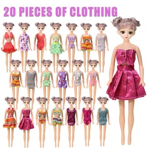 ? Liberte a imaginação do seu filho com nosso conjunto definitivo de roupas e acessórios para bonecas! Embalado com 70 surpresas, esta caixa de presente é o sonho de todos os amantes de bonecas. ? De sapatos de boneca elegantes a vestidos modernos, vestidos elegantes e trajes de banho fofos, nosso conjunto tem tudo. Os materiais de qualidade premium, incluindo cetim, renda, seda e tule, garantem durabilidade e um visual luxuoso. ?Vestir e despir as bonecas é muito fácil graças ao design autoadesivo na parte de trás de cada roupa. É o presente perfeito para aniversários, Natal ou qualquer ocasião especial. Encante seus pequenos com este lindo pacote fashion de boneca. Agora, deixe a aventura começar! ? (Observação: os vestidos deste conjunto são selecionados aleatoriamente, garantindo surpresa e emoção. Os estilos são atualizados regularmente, garantindo uma coleção nova e diversificada.) - Com 70 surpresas em um presente: 70 roupas e acessórios de boneca = 6 maiôs de biquíni aleatoriamente + 5 vestidos de biquíni aleatórios + 5 maiôs de biquíni aleatórios + 5 maiôs triângulos de biquíni aleatórios + 4 conjuntos de biquíni aleatórios + 50 pares de sapatos de boneca. Adequado para bonecas de 28 a 30 cm. - Qualidade premium: estas roupas e acessórios de boneca são feitos de material de alta qualidade, incluindo cetim, renda, seda e tule. O artesanato requintado torna nossas roupas de boa qualidade, duráveis e exclusivas. Além disso, nossas roupas e acessórios são seguros e não tóxicos, adequados para as crianças brincarem. - Design exclusivo: vem com uma ampla variedade de roupas e acessórios de grande escala que melhoram as ideias de contar histórias, inspirando criatividade e aventura. Todos os vestidos de boneca são fáceis de colocar e tirar, porque a parte traseira é projetada com fecho aderente, o que pode tornar mais fácil para suas meninas trocarem as roupas da boneca e mostrar o charme da boneca. - Presente perfeito para todas as ocasiões: seja um aniversário, Natal ou apenas uma festa, nossa bolsa fashion de boneca é o presente perfeito. É embalado em uma caixa lindamente projetada e pronto para ser dado como um presente especial. Pode ser armazenado rapidamente e é adequado para transporte. - Observação: todos são de estilo aleatório e as roupas serão selecionadas do inventário existente. As imagens são apenas parte do show. Vendemos apenas vestidos e acessórios. A boneca é apenas um modelo e não está incluída no pacote.