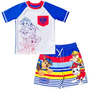- Blusa de natação de manga curta para meninos oficialmente licenciada pela Paw Patrol e calça de banho fofa e estilosa