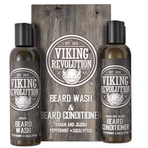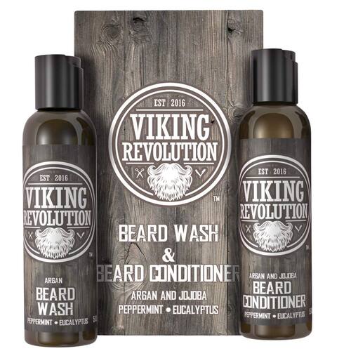 Conjunto de sabonete e condicionador de barba Viking Revolution com óleos de argan e jojoba — Suaviza, suaviza e fortalece o crescimento da barba — Aroma natural de hortelã e eucalipto — Shampoo para barba com óleo de barba (5 onças)