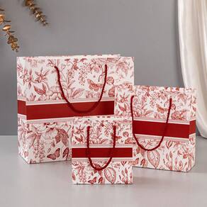 Material: cartolina branca Tamanhos: pequeno 14* 7* 15 cm Peso: 80 g; médio 20* 8* 20 cm Peso: 100 g; grande 30* 12* 27 cm Peso: 120 g Quantidade: 3 peças Padrão botânico vermelho clássico: apresenta desenhos vermelhos florais intrincados e inspirados na natureza em estilo vintage, oferecendo uma aparência festiva e elegante adequada para celebrações e apresentações decorativas. Material de cartão branco premium: feito de papel cartão branco espesso e durável que mantém a forma, ideal para embalar acessórios leves, itens pequenos e necessidades pessoais de transporte manual. Alças de corda fortes: equipadas com alças de corda vermelha torcida para uma aderência confortável e maior durabilidade, adicionando um toque refinado ao design geral. Três tamanhos práticos: inclui sacos pequenos (14 × 7 × 15 cm), médios (20 × 8 × 20 cm) e grandes (30 × 12 × 27 cm), oferecendo opções versáteis para diversos fins de embalagem. Design coordenado de 3 pacotes: o tema botânico vermelho combinado cria uma aparência coesa e sofisticada, adequada para apresentações em estilo boutique, ocasiões festivas ou armazenamento organizado.