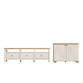 1x Rack para TV 75 Polegadas 180cm em MDF Tampo Madeira Maci?a Ananda Off White/Mel Largura: 180 cm Altura: 55,8 cm Peso: 38,24 kg Profundidade: 35,5 cm Necessita Montagem: Sim
