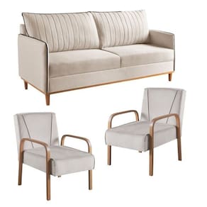 Conjunto de Sala de Estar 1 Sofá Dois Lugares Persa e 2 Poltronas Ágata Bege