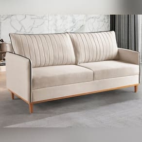 1x Sofá Fixo 2 Lugares Living Persa Veludo Bege