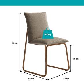 Especificações Cadeira: Medidas: Largura: 46 cm | Altura: 87 cm | Profundidade: 56cm Altura até o assento: 48 cm Peso: 15 Kg Peso suportado: Até 100 Kg