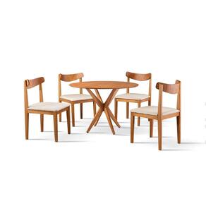 Um conjunto que transforma a sala de jantar em um espaço convidativo, com o equilíbrio perfeito entre design e funcionalidade. Medida da Mesa (A x L x P): 73,5x100x100 Peso da Mesa: 20 kg Mesa suporta até: 20 kg Acabamento da Cadeira/Banco: Verniz Natural Acabamento da Mesa: Verniz Almofada do assento: Fixa Ambiente Principal: Sala de Jantar Cadeira/Banco estofada: Somente Assento Estofado Cadeira/Banco Estofada: Somente Assento Estofado Cadeira/Banco suporta até: 120 kg Cadeira/Banco Suporta Até: 120.0000 codigo_ean: 7900288280244 Configuração do Conjunto: Mesa com Cadeiras Cor: Nude/Freijó Cor da Base: Natural Cor das Cadeiras: Marrom Cor do Produto: Nude/Freijó Cor do Tampo: Natural Cor Secundária: Bege De Canto (Canto Alemão): Não Escala de Brilho: Brilhante Espessura do Tampo: 50 mm Estrutura do Assento: Eucalipto Estrutura do Encosto: Madeira Formato do Tampo: Redondo Informações Complementares: Utilizar aspirador de pó, escova com cerdas macias ou limpeza a seco. Não utilizar produtos químicos, abrasivos ou limpeza a vapor. Evitar exposição prolongada ao sol. Itens Inclusos: 1 Mesa e 4 Cadeiras Linha ou Coleção: Aurora Manual de Montagem e Instalação: https://product-hub-prd.madeiramadeira.com.br/965363843/documents/0bd874df-33f3-4d69-9140-bb7325a2991f3299694518817617637507282.pdf Marca: Zurc Decor Material da Base da Mesa: Madeira Maciça Material da Estrutura da Cadeira: Madeira Maciça Material do Tampo: Madeira Maciça Material Principal: Madeira Maciça Material Principal das Cadeiras/Bancos: Madeira Maciça Medida da Cadeira/Banco (A x L x P): 85x50x49 Medida do Tampo (L x C x E): 100 x 100 x 5 Mesa Dobrável: Não Mesa Extensível: Não Necessita Montagem: Não Origem do Produto: Nacional Peso da Cadeira/Banco: 15 kg Possui Apoio para Braços: Não Possui Apoio Para os Pés: Não Possui Vidro: Não Quantidade de Cadeiras: 4 Quantidade de Lugares: 04 Recomendações de Uso, Manutenção e Limpeza: Utilizar aspirador de pó, escova com cerdas macias ou limpeza a seco. Não utilizar produtos químicos, abrasivos ou limpeza a vapor. Evitar exposição prolongada ao sol. Tipo de Assento: Fixo Tipo de Madeira Maciça da Base da Mesa: Eucalipto Tipo de Madeira Maciça do Tampo: Eucalipto Marca: Não Informado