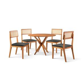 Conjunto de Sala de Jantar Mesa 100cm com 4 Cadeiras Ava Preto/Freijó - Marrom