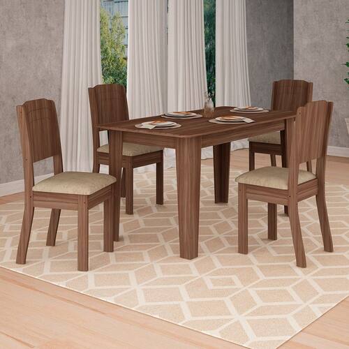 O Conjunto de Jantar Tais com 4 Cadeiras vai agregar elegância e sobriedade a sua sala de Jantar. Possui estrutura 100% em MDF com acabamento U.V. touch com 7 camadas de proteção que proporciona mais resistência e durabilidade ao produto. As cadeiras também fabricadas em 100% MDF possuem revestimento no assento macio e agradável em tecido Castor Amassado e densidade da espuma D20 além de uma estrutura reforçada que suporta até 120Kg. É a peça que faltava para sua Sala de Jantar!